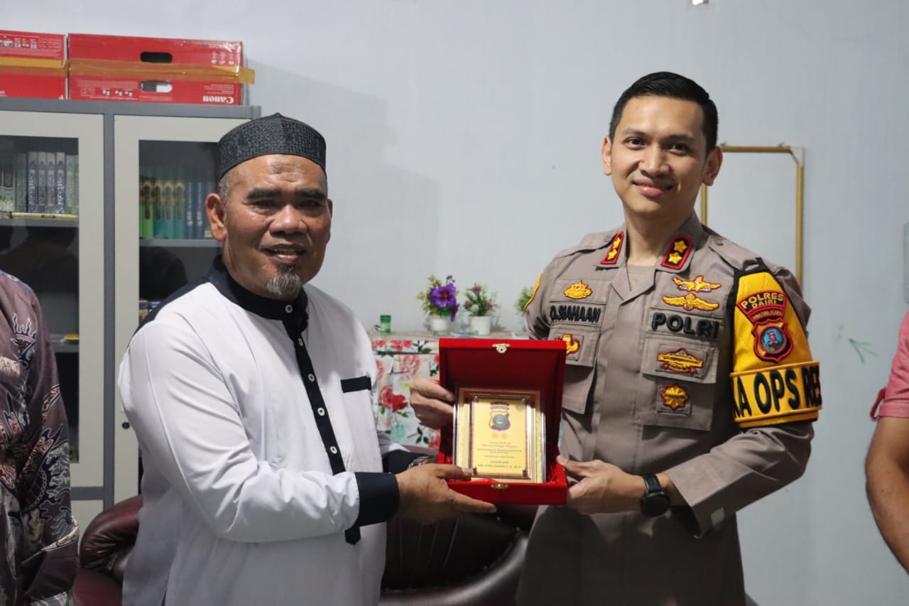 Sebagai bentuk Penghormatan, Kapolres Menyerahkan Cenderamata berupa Plakat Polres Dairi Kepada Ketua MUI Kabupaten Dairi.