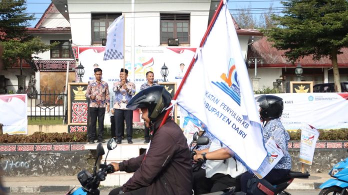 Bupati Dairi, Ir. Vickner Sinaga, MM dalam hal ini diwakili Wakil Bupati Dairi, Wahyu Daniel Sagala Dalam Rangka Memperingati, Hari Keluarga Nasional (Harganas) Melepaskan, Lebih dari 100 Orang Peserta, dengan 15 Mobil dan 30 Kendaraan Roda Dua yang Mengikuti Kirab Bangga Kencana Harganas yang Ke 32 Tahun 2024. Kamis, (26/06/2025) yang di Berangkatkan dari Depan Kantor Bupati, Jalan Sisingamangaraja, Kecamatan Sidikalang, Kabupaten Dairi, Provinsi Sumatera Utara, Indonesia.