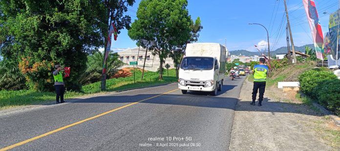 Pancapena.com – Polres Labuhanbatu melalui Pos Pelayanan 2 yang terletak di Jalan H.M. Said, Kelurahan Sigambal, Kecamatan Rantau Selatan, Kabupaten Labuhanbatu, melaksanakan pengamanan arus lalu lintas guna mendukung kelancaran perjalanan para pemudik selama libur Lebaran 2025. Selasa, (8/04/25).