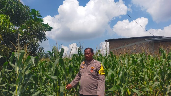 Kegiatan personil Polsek Medang Deras Aipda Walter Hutahean upaya untuk menggerakkan warga meningkatkan ketahanan pangan dengan melakukan pengelolaan/Penanaman jagung.