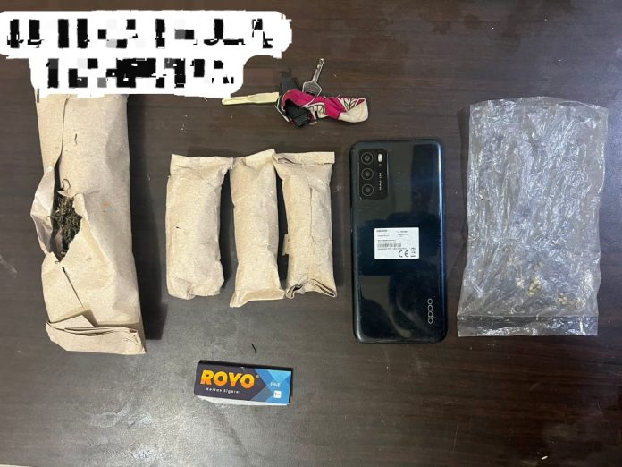 Saat Pelaku MS (32) diamankan berhasil ditemukan barang bukti berupa 1 ( satu ) bungkus kertas nasi warna coklat yang di dalamnya di duga berisikan narkotika jenis ganja di atas sepede motor Tersangka dan 3 ( tiga ) bungkus kertas nasi warna coklat yang di dalamnya diduga berisikan narkotika jenis ganja di temukan di dalam jok sepeda motor milik Tersangka.