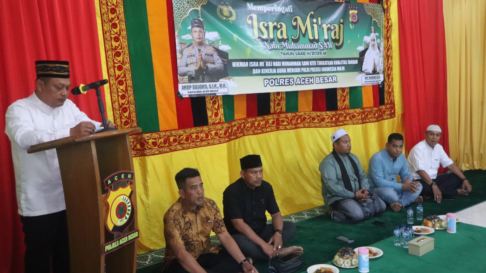 Pada acara kegiatan Isra Mi’raj 1446 H Kapolres Aceh Besar AKBP Sujoko S.I.K.,M.H., memberikan kata-kata sambutan antara lain :