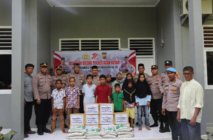 Aceh Besar, Panca pena.com -Dalam rangka memperingati Hari Bhayangkara ke-79, Polres Aceh Besar menggelar kegiatan Bantuan Sosial yang dilaksanakan di Panti Asuhan KinderHut Kecamatan Indrapuri Kabupaten Aceh Besar, Jumat (20/06/2025).