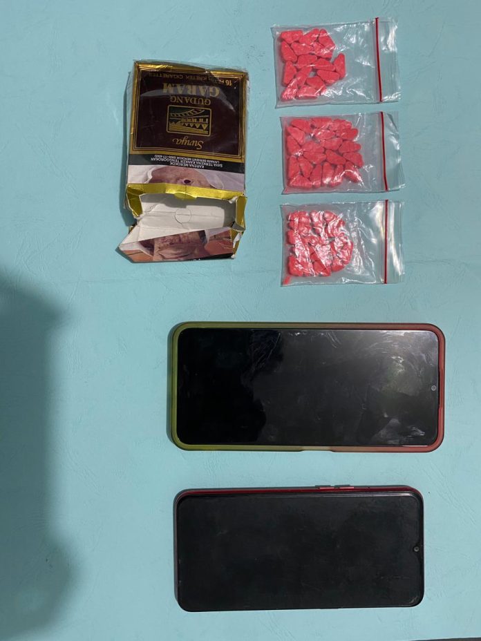 - 50 butir pil ekstasi berwarna merah dengan berat bruto 22,17 gram,