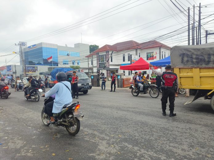 Dalam kegiatan ini, petugas turut mengatur arus lalu lintas di sekitar Jalan Sisingamangaraja guna mencegah kemacetan akibat meningkatnya mobilitas kendaraan. Selain itu, anggota kepolisian juga membantu masyarakat yang hendak menyeberang jalan sebelum dan sesudah membeli takjil.