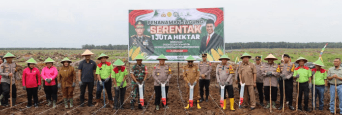 Labuhanbatu ,Pancapena.com– Dalam rangka mendukung program ketahanan pangan dan swasembada jagung nasional tahun 2025, Polres Labuhanbatu bersama instansi terkait menggelar penanaman jagung serentak di areal PT. Smart Brussel Divisi III, Desa Perkebunan Brussel, Kecamatan Marbau, Kabupaten Labuhanbatu Utara, Selasa (21/1/2025). Kegiatan ini menjadi bagian dari program nasional yang menargetkan penanaman jagung di lahan seluas 1 juta hektare di seluruh Indonesia.