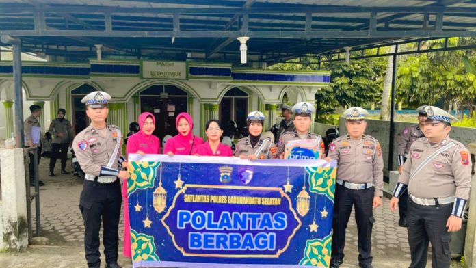 Pancapena.com – Labuhanbatu Selatan – Dalam rangka menyemarakkan Bulan Suci Ramadhan 1446 H, Polres Labuhanbatu Selatan melalui Satuan Lalu Lintas menggelar kegiatan berbagi takjil kepada masyarakat pengguna jalan. Kegiatan ini berlangsung di Jalinsum Desa Sosopan, Kecamatan Kotapinang, Kabupaten Labuhanbatu Selatan, tepatnya di KM 346-347 Medan-Gunung Tua, pada Jumat, 14 Maret 2025.