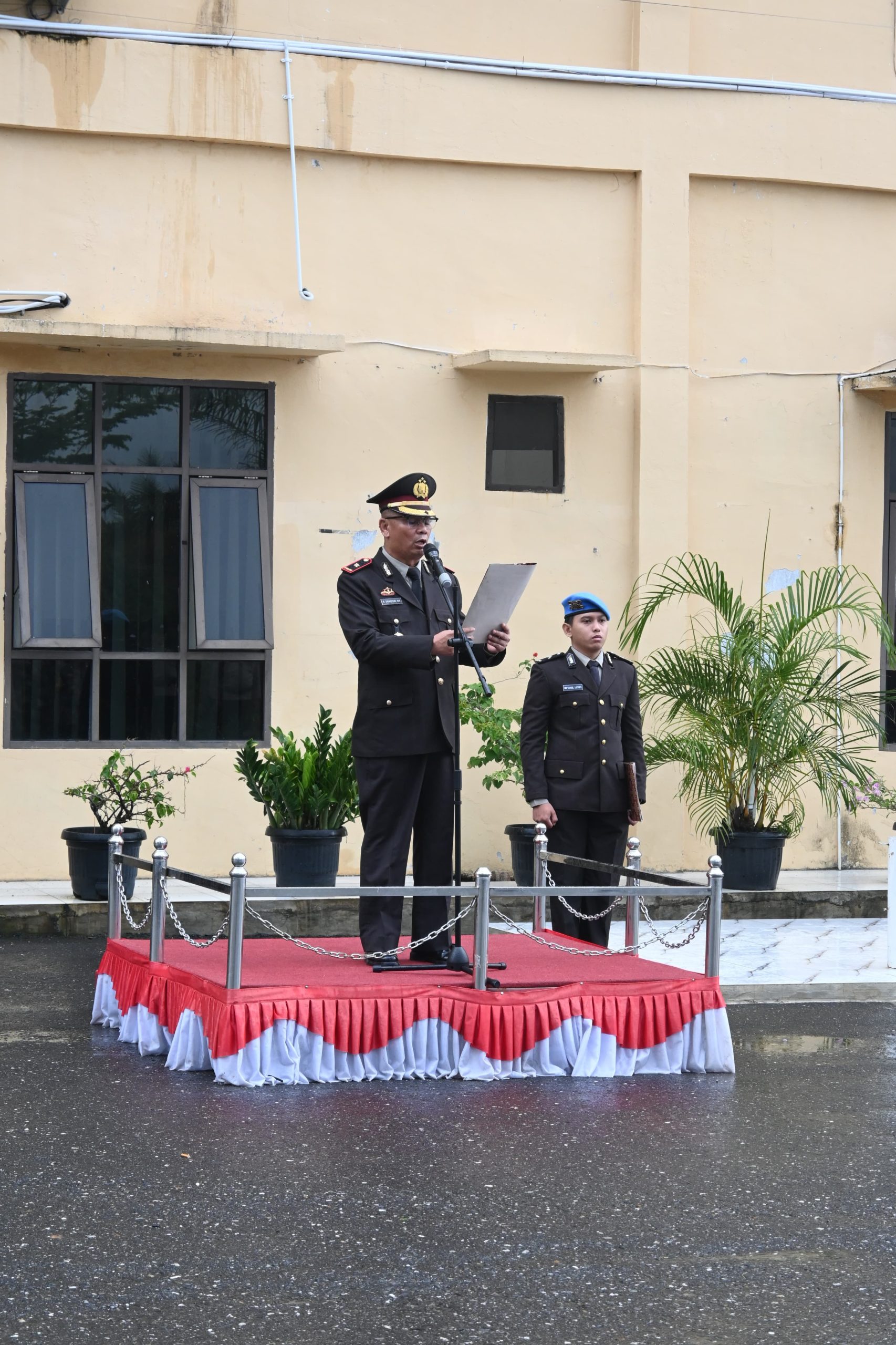Upacara ini turut dihadiri oleh para Pejabat Utama (PJU), perwira, staf PNS, seluruh personel Polres, serta Bhayangkari Cabang Labuhanbatu Selatan. Suasana berlangsung khidmat dan penuh penghormatan terhadap nilai-nilai kebangsaan dan pengabdian.