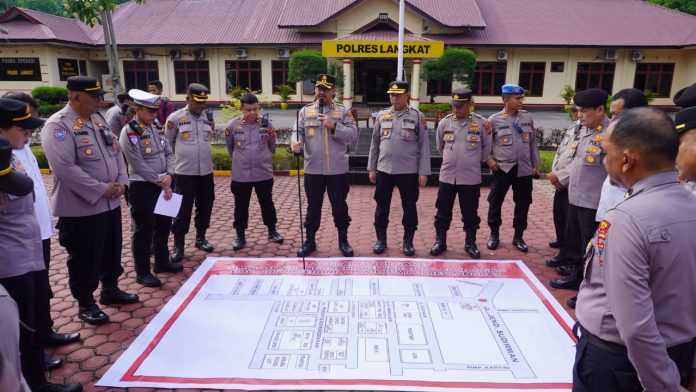 Kegiatan ini dipimpin langsung oleh Kapolres Langkat, AKBP David Triyo Prasojo, S.H., S.I.K., M.Si., yang turut didampingi oleh Wakapolres Kompol Husnil Mubarok Daulay, S.H., S.I.K., M.I.K., Kabag Ops Kompol Abdul Rahman, S.H., M.H., Kasat Samapta AKP MK. Daulay, S.H., Kasat Lantas AKP Maruli, S.H., M.H., serta Kasi Propam Iptu Faisal Hasibuan.