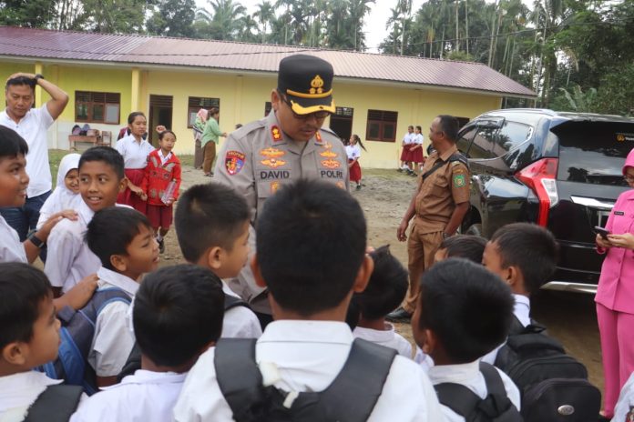 Pancapena.com – Langkat – Polres Langkat melalui Kapolres AKBP David Triyo Prasojo, SH, SIK, MSi, bersama Ketua Bhayangkari Cabang Langkat, Nyonya Ayu David, serta sejumlah PJU Polres Langkat, mengunjungi SD Negeri 056427 di Desa Adin Tengah, Kecamatan Salapian, pada Selasa, 4 Februari 2025. Kunjungan ini bukan hanya simbolis, tetapi juga sebagai wujud nyata kepedulian Polres Langkat terhadap pendidikan di wilayah tersebut.