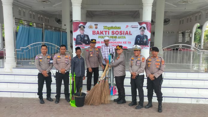 PIDIE JAYA – Pancapena.com – Kepolisian Resor (Polres) Pidie Jaya menggelar bakti sosial dalam rangka menyambut Hari Bhayangkara ke-79, Jumat (13/6/2025). Kegiatan yang bertema “POLRI PRESISI MENGABDI UNTUK MASYARAKAT MENDUKUNG PROGRAM PRIORITAS NASIONAL” ini dilaksanakan di Masjid Al-Munawarah, Gampong Meunasah Bie, Kecamatan Meurah Dua, Kabupaten Pidie Jaya.