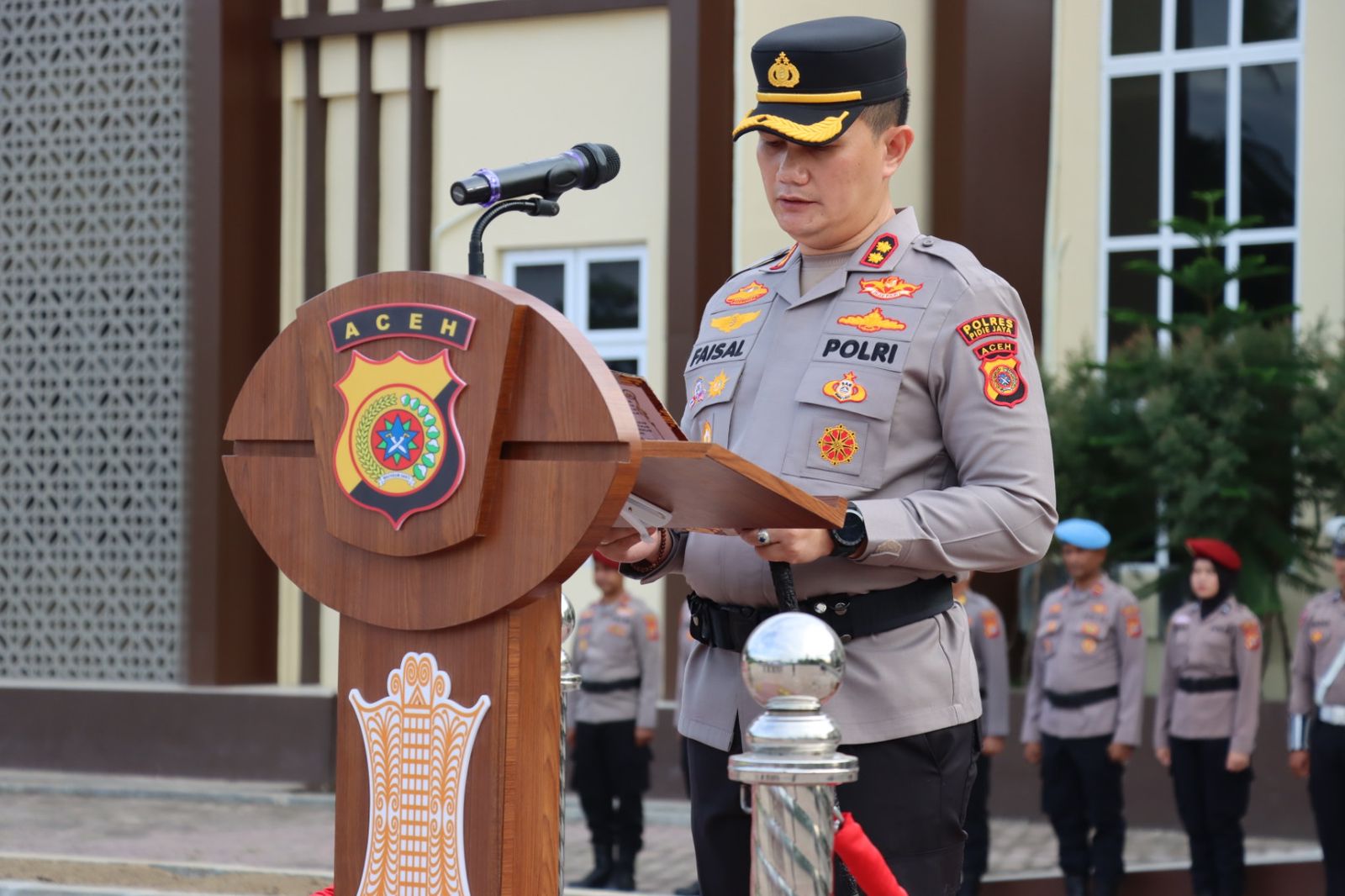 Upacara berlangsung dengan khidmat dan dihadiri oleh Wakapolres Kompol Iswahyudi, S.H., CPHR., CBA., Ketua Bhayangkari Cabang Pidie Jaya Ny. Dewi Ahmad Faisal Pasaribu, serta seluruh pejabat utama dan personel Polres.