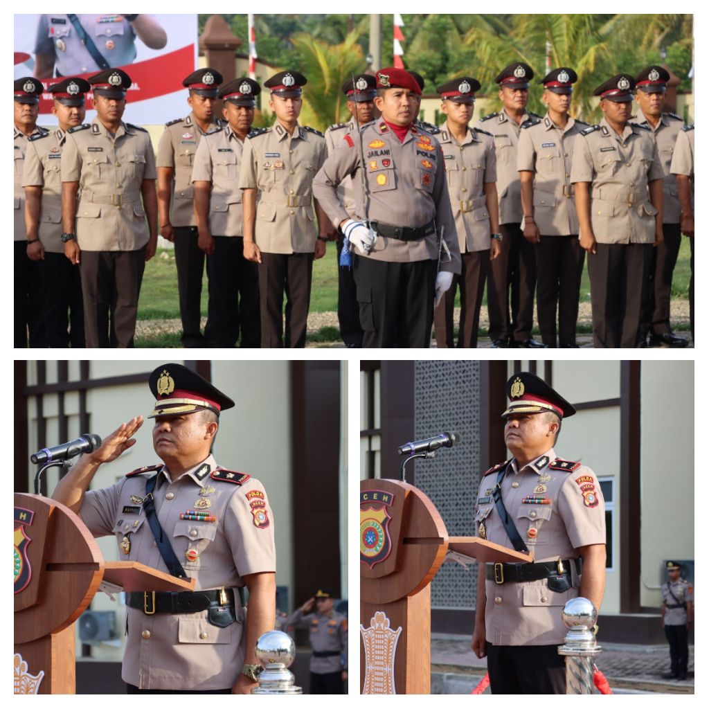 Wakapolres Pidie Jaya, Kompol Iswahyudi, S.H., CPHR., CBA., bertindak sebagai inspektur upacara menggantikan Kapolres AKBP Ahmad Faisal Pasaribu, S.H., S.I.K., M.H. Sementara itu, Kabag SDM Polres Pidie Jaya AKP Mahyuddin, S.H., M.M., ditunjuk sebagai perwira upacara, dan Kapolsek Meurah Dua Ipda Jailani memimpin sebagai komandan upacara.