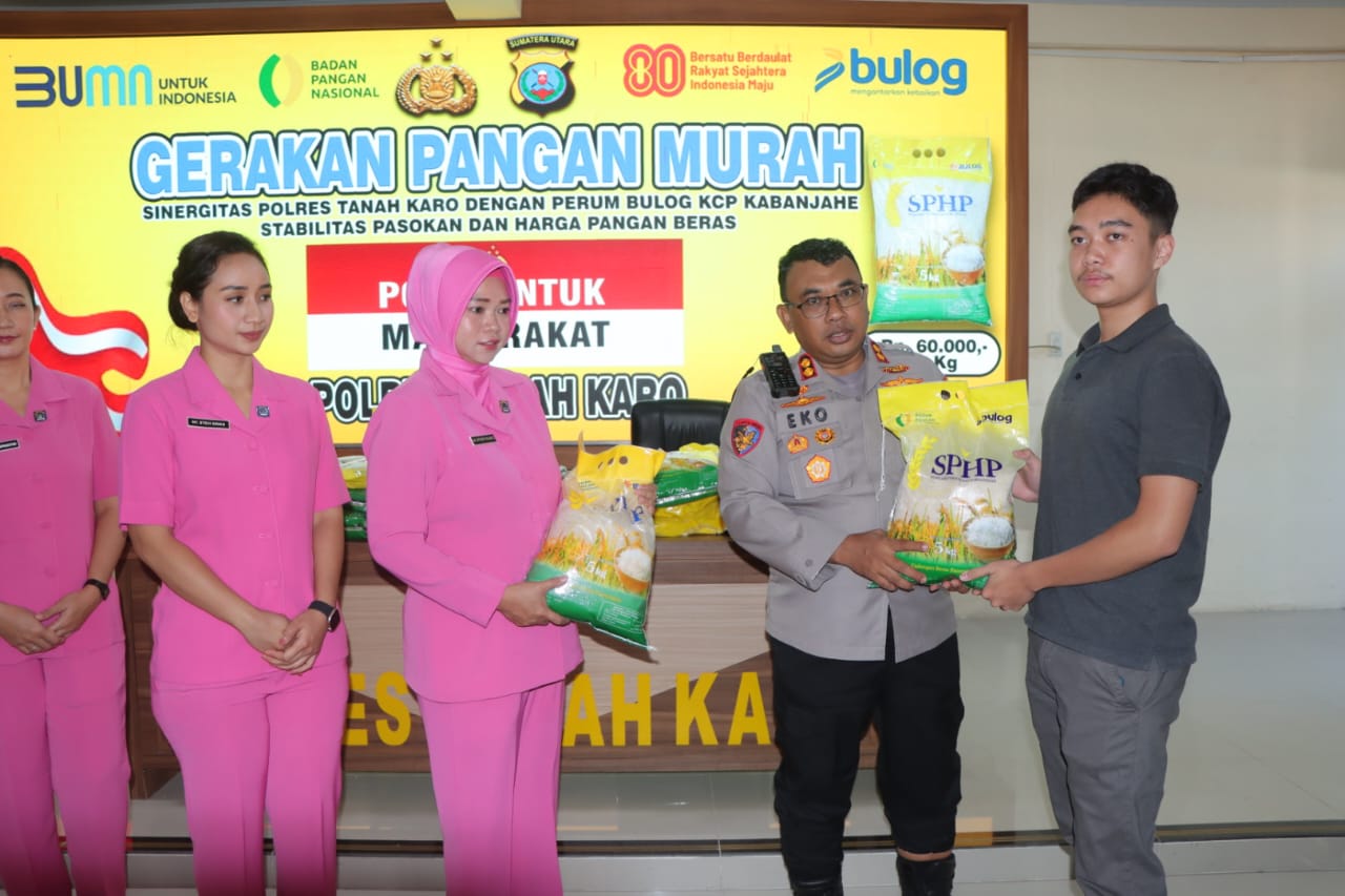 Kabanjahe, 12 Agustus 2025 – Pancapena.com – Polres Tanah Karo bekerja sama dengan Perum Bulog KCP Kabanjahe menyelenggarakan Gerakan Pangan Murah sebagai langkah strategis menjaga stabilitas harga dan pasokan beras di Kabupaten Karo. Kegiatan ini digelar di halaman Mako Polres Tanah Karo dengan menyediakan 400 sak beras SPHP kemasan 5 kg seharga Rp60.000 per sak.