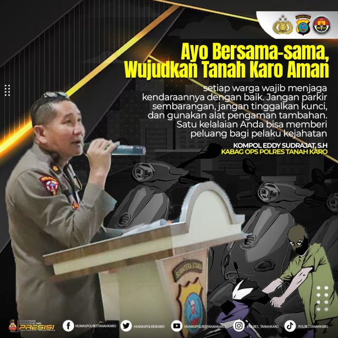 Tanah Karo – Pancapena.com – Polres Tanah Karo mengimbau masyarakat untuk meningkatkan kewaspadaan terhadap tindak kejahatan pencurian kendaraan bermotor (curanmor) yang belakangan ini kerap terjadi di sejumlah wilayah.