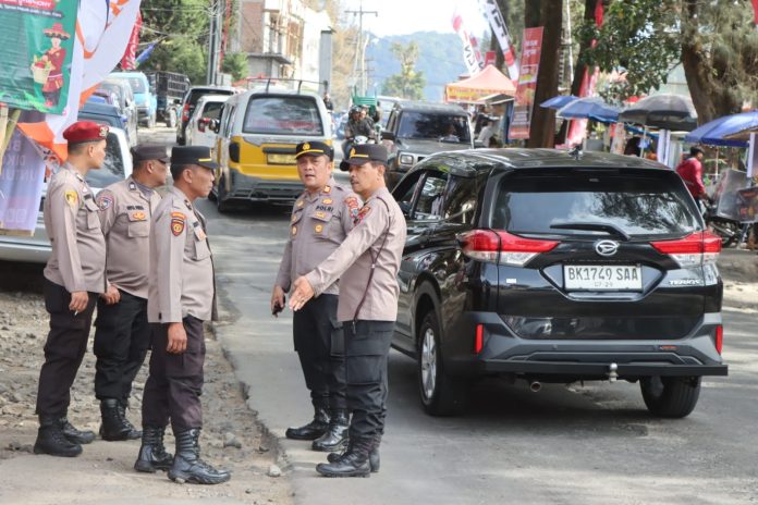 Berastagi, Karo – Pancapena.com – Dalam rangka mendukung kelancaran dan keamanan pelaksanaan Pesta Bunga dan Buah Kabupaten Karo 2025, Polres Tanah Karo mengerahkan sebanyak 111 personel untuk melakukan pengamanan selama event yang berlangsung meriah di Open Stage Berastagi, Kamis (31/7/2025).