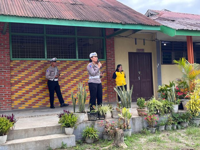 Kabanjahe, Karo – Pancapena.com – Dalam rangka mendukung Operasi Keselamatan Toba 2025, Satgas Preemtif dari Polres Tanah Karo menggelar sosialisasi di SMA Katolik 2 Kabanjahe pada hari Sabtu(15/2/2025). Tepat pukul 07.30 WIB, di bawah langit cerah, IPTU Rotua Sipayung, SH selaku Kanit Kamsel bersama AIPTU Sudarmono, Brigpol Heberlianta, dan BR Tarigan, SH turun ke lapangan untuk memberikan himbauan mengenai pentingnya tertib berlalu lintas dan keselamatan di jalan raya.
