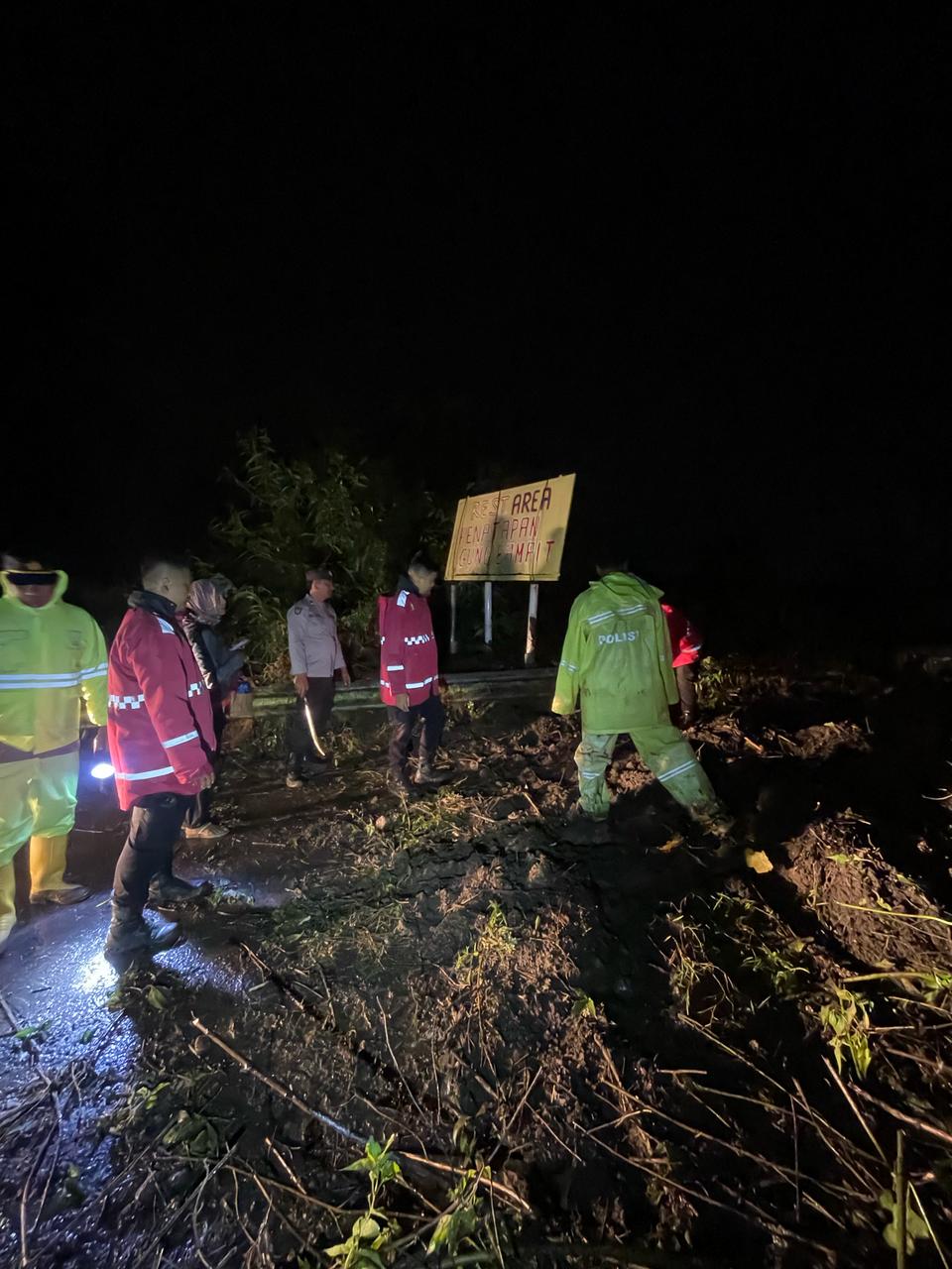 Untuk sementara, jalan di titik ini belum bisa dilalui hingga proses pembersihan selesai.