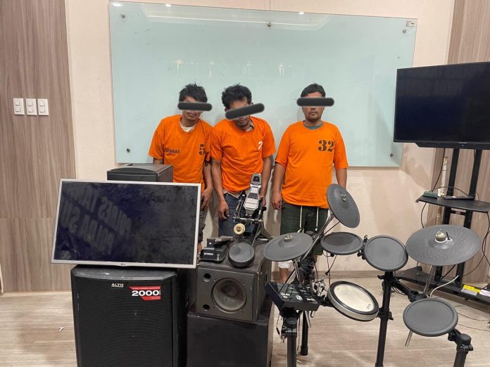 Dari tangan para tersangka, polisi menyita sejumlah barang bukti hasil curian, di antaranya 1 set drum elektrik merek Yamaha, 1 unit televisi merek LG warna hitam, 1 set sound system (mixer, subwoofer, dan speaker) warna hitam dan 1 set kunci yang digunakan untuk melakukan aksi pencurian