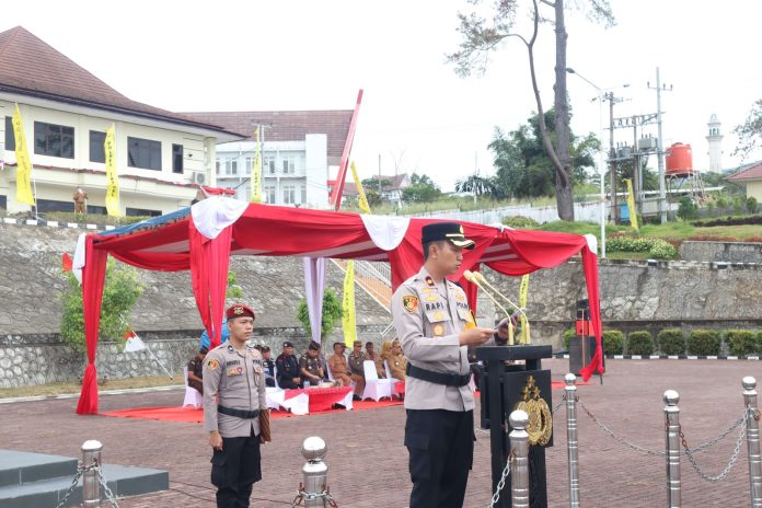 Pimpinan apel menginstruksikan seluruh personel agar melaksanakan tugas dengan penuh tanggung jawab, profesionalisme tinggi, serta menjunjung pendekatan yang santun kepada masyarakat.