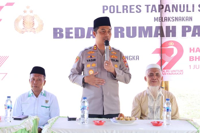 Dalam sambutannya, AKBP Yasir Ahmadi menegaskan bahwa kegiatan ini merupakan bagian dari komitmen Polres Tapanuli Selatan untuk terus hadir dan berbuat nyata di tengah masyarakat, khususnya mereka yang membutuhkan. Ia menyampaikan bahwa seluruh personel Polres Tapsel secara sukarela menyisihkan sebagian gajinya setiap bulan untuk kegiatan sosial seperti bedah rumah, santunan, dan zakat yang dikelola bersama BAZNAS.