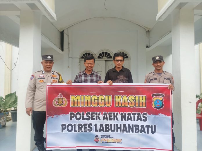 Labuhanbatu Utara – Pancapena.com – Dalam rangka mempererat hubungan antara Polri dan masyarakat, Polsek Aek Natas melaksanakan kegiatan Minggu Kasih pada hari Minggu, 28 September 2025, pukul 10.00 WIB, bertempat di halaman Gereja HKBP Aek Natas, Kecamatan Aek Natas, Kabupaten Labuhanbatu Utara.