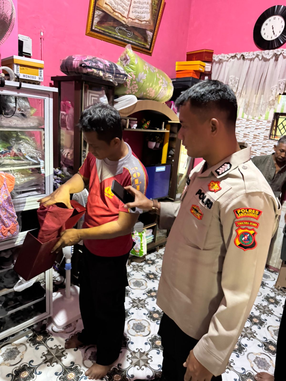 Dipimpin langsung oleh Kapolsek Bilah Hilir AKP Andita Sitepu, S.H., M.H., dan disaksikan oleh Kepala Dusun, M. Jupri Lubis, petugas melakukan pemeriksaan di lokasi rumah milik warga berinisial H yang diduga terlibat dalam video penyalahgunaan sabu.