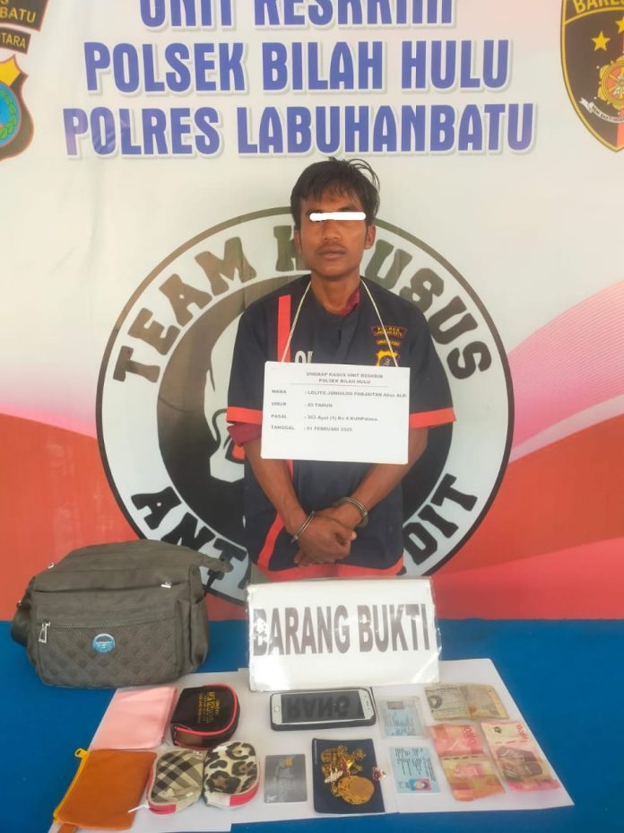 Menindaklanjuti laporan tersebut, Kapolsek Bilah Hulu, AKP R. Sinulingga, memerintahkan Kanit Reskrim IPDA Andi S. Pasaribu, S.H., beserta tim untuk melakukan penyelidikan. Berdasarkan hasil investigasi, tim mengidentifikasi pelaku sebagai LJA alias Aldo (28), seorang mahasiswa asal Kelurahan Perdamean, Kecamatan Rantau Selatan. Rekan pelaku yang berinisial U masih dalam pengejaran.