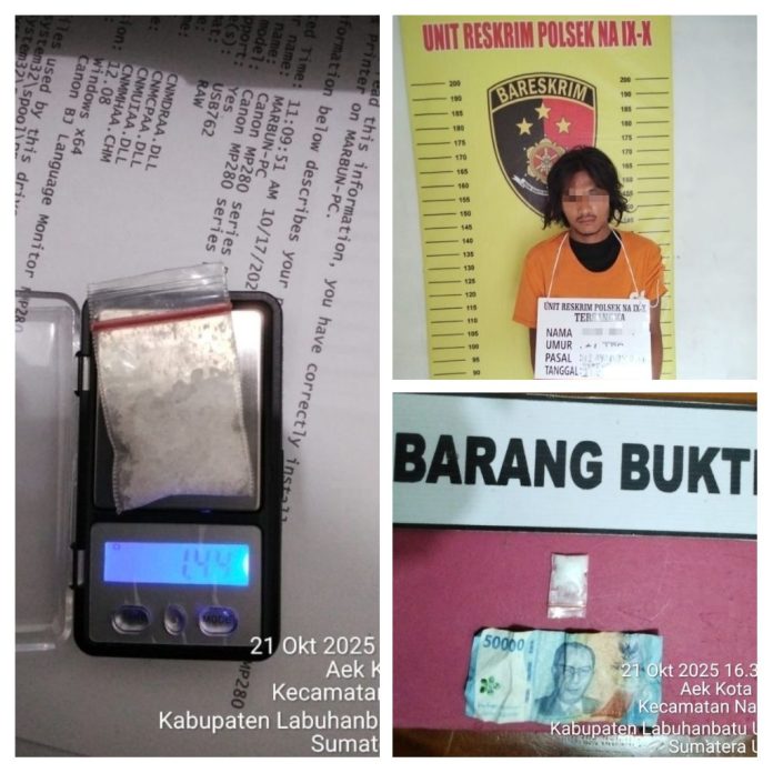 Labuhanbatu Utara – Pancapena.com – Unit Reskrim Polsek Na IX-X Polres Labuhanbatu kembali menunjukkan prestasi dalam pemberantasan narkotika di wilayah hukumnya dengan berhasil mengamankan seorang pria berinisial RIS alias Fani (26) yang diduga terlibat dalam penyalahgunaan narkotika jenis sabu-sabu.