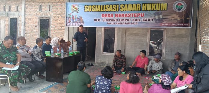 Karo – Pancapena.com – Dalam rangka meningkatkan kesadaran hukum di kalangan masyarakat, Polsek Simpang Empat bersama unsur Forum Komunikasi Pimpinan Kecamatan (Forkopimca) mengadakan kegiatan Sosialisasi Sadar Hukum di Desa Berastepu, Kecamatan Simpang Empat, Kabupaten Karo, pada Kamis, 11 September 2025, sekitar pukul 10.00 WIB.