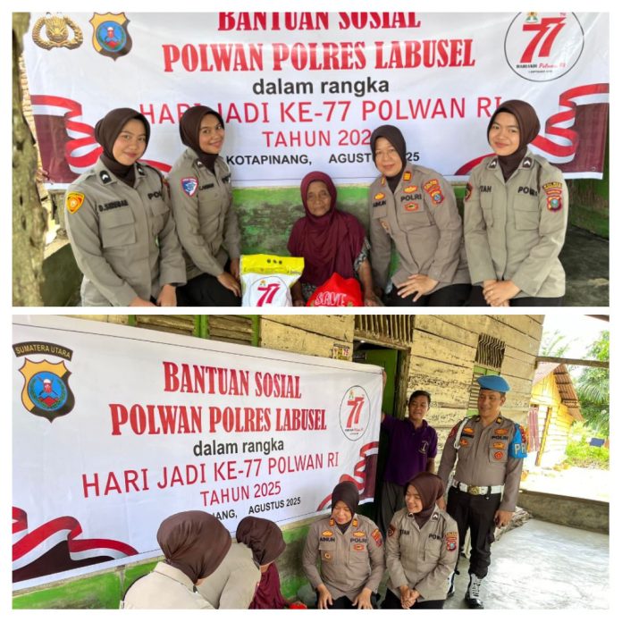 Pancapena.com – Dalam rangka menyambut Hari Jadi Polisi Wanita (Polwan) ke-77, Polwan Polres Labuhanbatu Selatan melaksanakan kegiatan Bakti Sosial (Baksos) dengan menyalurkan bantuan kepada masyarakat yang membutuhkan, Rabu (27/8/2025).