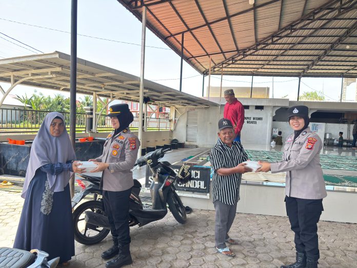 PIDIE JAYA – Pancapena.com – Sebanyak 50 paket makanan gratis dibagikan oleh Polwan Polres Pidie Jaya kepada masyarakat dalam program Jumat Berkah yang digelar di Masjid Baitussattar (Masjid Tuha), Kecamatan Meureudu, Jumat (4/7/2025).