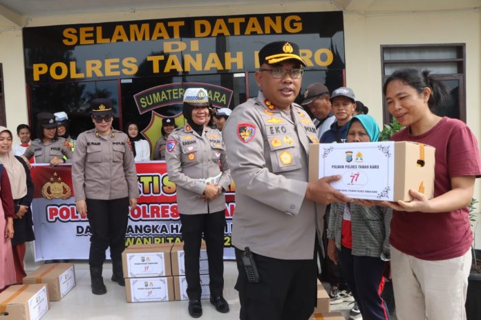 Kabanjahe, Karo – Pancapena.com – Dalam rangka menyambut Hari Jadi Polwan ke-77 tahun 2025, Polisi Wanita (Polwan) Polres Tanah Karo menggelar kegiatan bakti sosial dan bakti religi yang dilaksanakan di wilayah hukum Polres Tanah Karo pada Rabu (27/8), mulai pukul 09.00 WIB.