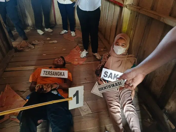 Korban diperankan oleh figur pengganti, sementara kegiatan disaksikan langsung oleh penyidik, jaksa penuntut umum (JPU), penasihat hukum tersangka, dan para saksi.