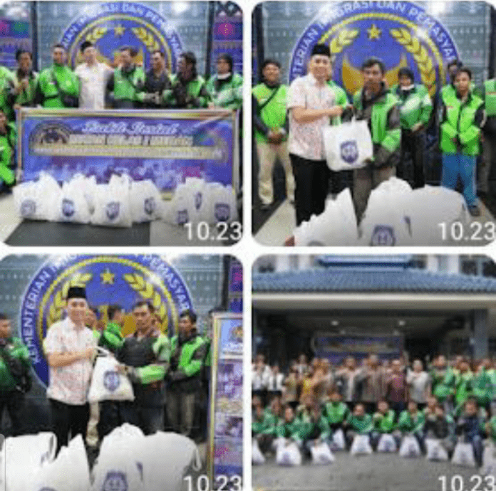 Rumah Tahanan Negara (Rutan) Kelas I Medan Kanwil Ditjenpas Sumut melaksanakan kegiatan sosial dengan membagikan 50 paket bantuan sosial berupa sembako kepada para pengemudi ojek online, Jumat, (12/9).