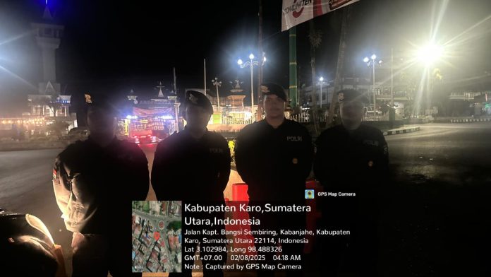 Karo – Pancapena.com – Satuan Samapta Polres Tanah Karo melaksanakan patroli stasioner pada Sabtu dini hari, 2 Agustus 2025, sebagai bagian dari upaya menjaga stabilitas keamanan dan ketertiban masyarakat. Patroli ini menyasar sejumlah titik rawan di wilayah Kabanjahe, Kabupaten Karo, antara lain Jalan Kesehatan, Simpang Enam, Tugu Catur, dan Tugu Bambu Runcing.