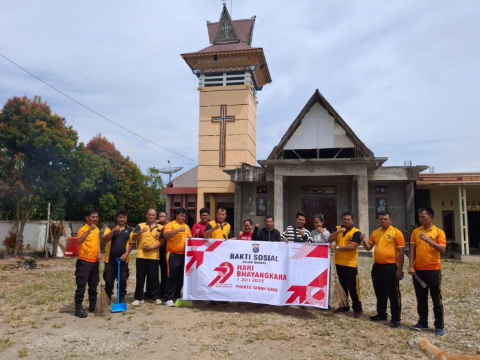 Tigabinanga, Karo — Pancapena.com – Dalam rangka menyambut Hari Ulang Tahun ke-79 Kepolisian Negara Republik Indonesia, Polsek Tigabinanga melaksanakan rangkaian kegiatan bakti sosial dan olahraga bersama sebagai wujud kepedulian sosial dan penguatan sinergi dengan masyarakat, Selasa (24/6/2025).