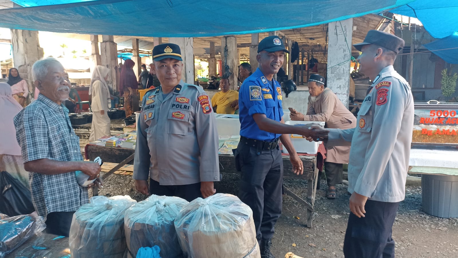 Aceh Besar,Panca pena.com- Personel Sat Binmas Polres Aceh Besar gencarkan sambang di Pasar Tradisional untuk Jaga Kamtibmas, Rabu (23/04/2025)