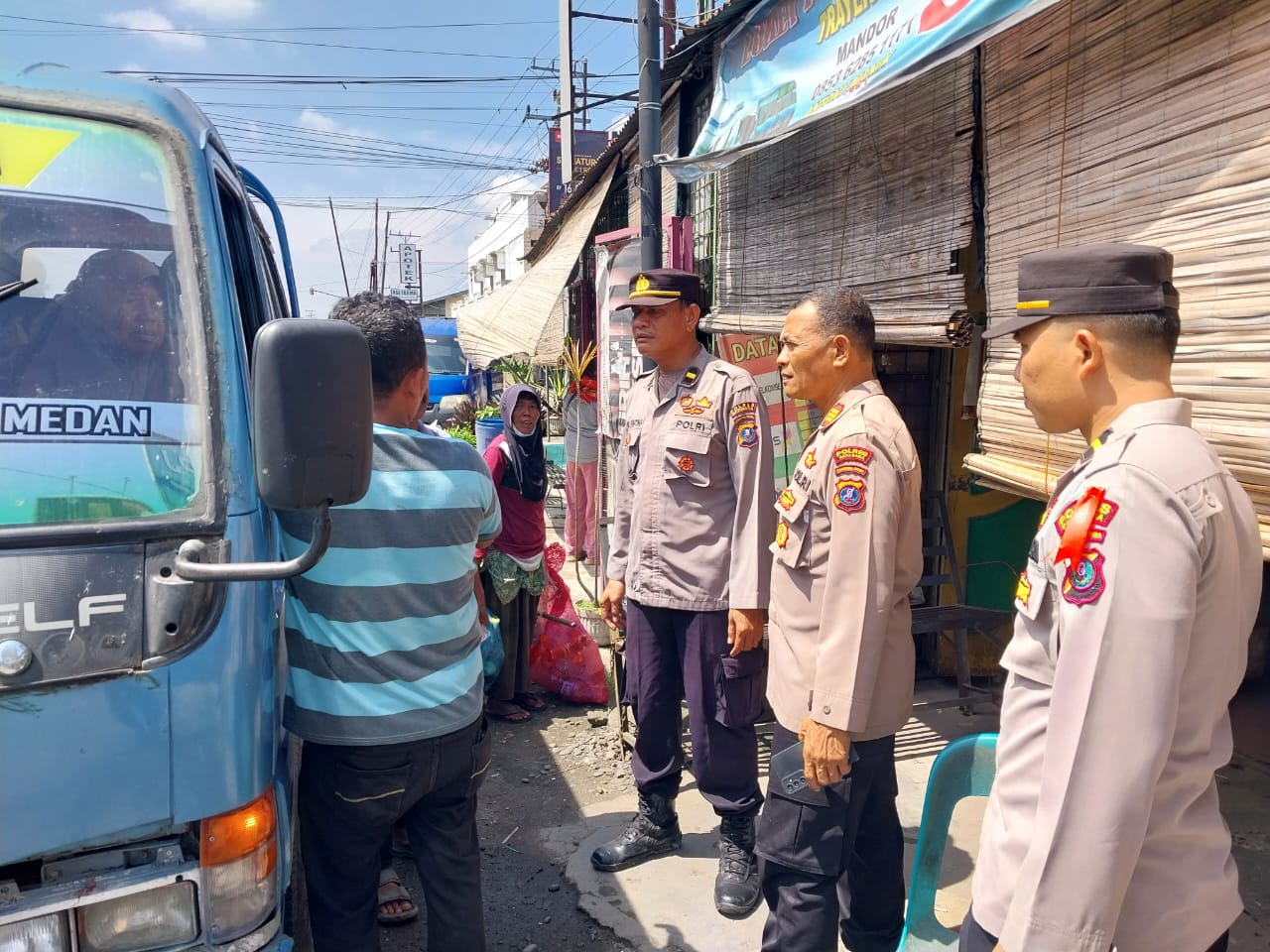 Kasat Binmas Polres Batu Bara, AKP Sutari, bersama personel Sat Binmas, KBO Sat Binmas IPDA Winda B. Ginting, Kanit Bhabinkamtibmas IPDA Sugiarto, S.H., dan Banit Binkamsa BRIPKA Suparman turun langsung ke lapangan untuk memberikan himbauan kepada masyarakat, petugas loket, serta para pengemudi angkutan umum.