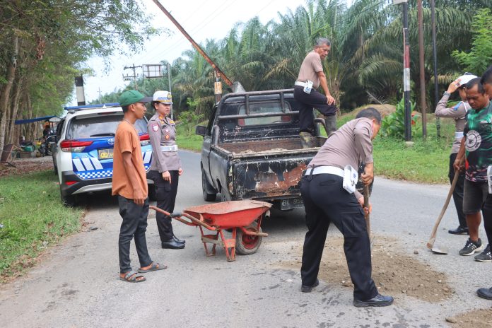 Kapolres Batubara AKBP TAUFIK HIDAYAT TAYEB, S.H, S.IK, M.M., melalui Kasat Lantas Polres Batubara AKP Agnis Juwita Manurung, S.I.K.,M.M.,M.Si membuat suatu terobosan dengan melakukan Penimbunan Jalan Yang Berlubang pada jalan Perintis Kemerdekaan dan ruas Jalinsum kisaran – medan dengan batu padas dan tanah campur pasir Perlintasan Jalinsum kisaran – medan, guna memberikan Rasa Aman dan Nyaman Kepada Masyarakat yang yang melintas di Wilayah Hukum Polres Batu Bara dan juga Mencegah Terjadinya Kepadatan Lalu Lintas dikarenakan Jalan Berlobang pada Ruas Jalinsum”.