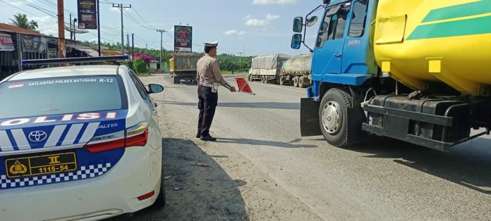 Satlantas Polres Batu Bara Gelar Patroli Kibas Bendera dan Monitoring Arus Lalu Lintas di Jalinsum