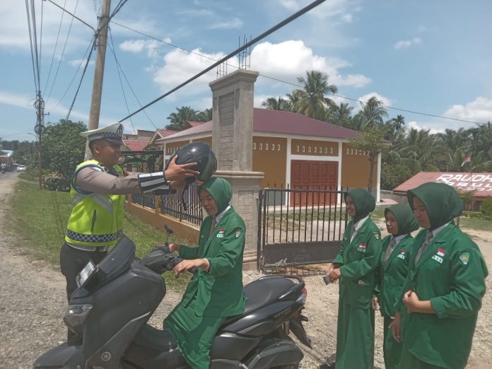 Dalam kegiatan tersebut, personel Satlantas BRIPKA D. Sinabang dan BRIPDA Rapael memberikan sosialisasi pentingnya keselamatan berkendara, seperti penggunaan helm berstandar SNI, mematuhi rambu lalu lintas, dan menjaga keselamatan pribadi serta orang lain di jalan.