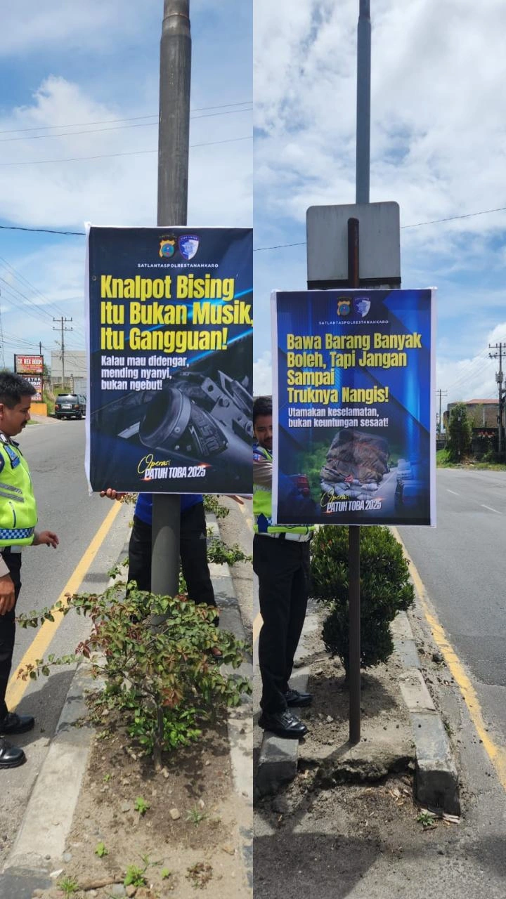 Karo – Pancapena.com – Satuan Lalu Lintas (Satlantas) Polres Tanah Karo gencar melakukan sosialisasi Operasi Patuh Toba 2025 dengan menyebarkan banner imbauan di sejumlah titik strategis jalur lintas di wilayah Kabupaten Karo.