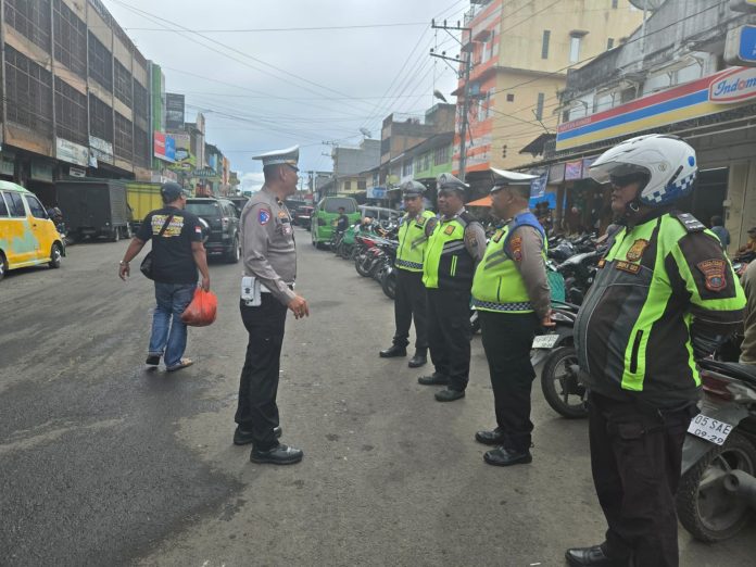 Kabanjahe, 17 Mei 2025 – Pancapena.com – Satuan Lalu Lintas (Satlantas) Polres Tanah Karo melaksanakan kegiatan pengamanan dan penertiban di kawasan pusat Pasar Kabanjahe, tepatnya di Jalan Kapten Bangsi Sembiring, Sabtu pagi (17/5). Kegiatan dimulai sejak pukul 09.30 WIB dan berlangsung hingga selesai.