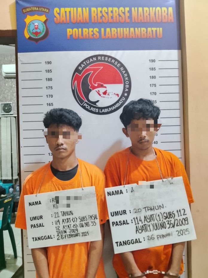Kapolres Labuhanbatu AKBP Dr. Bernhard L Malau SIK, MH, melalui Kasi Humas Kompol Syafrudin, Selasa (04/03/25) mengatakan, dua tersangka yang diamankan yakni RD alias Koteng (21) dan A alias Andre (20).