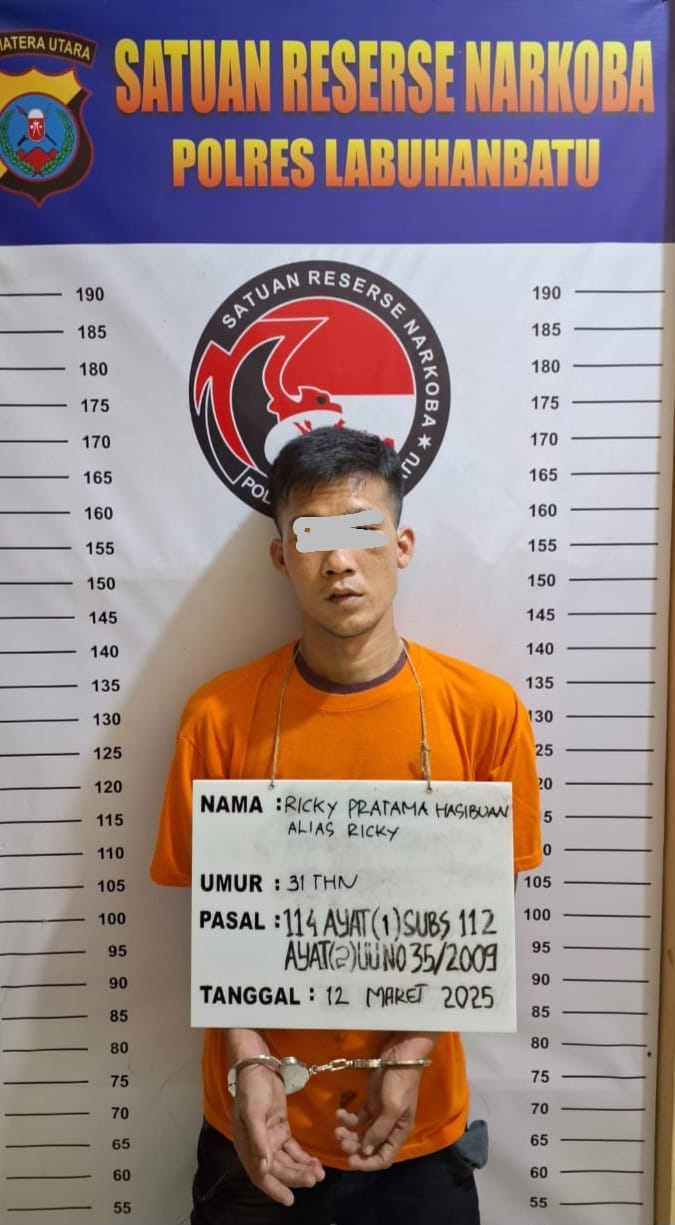 Satresnarkoba Polres Labuhanbatu kembali mengungkap kasus peredaran narkotika di wilayah hukumnya. Seorang pria berinisial RPH alias Ricy (31), yang merupakan residivis, berhasil diamankan bersama barang bukti narkotika jenis sabu di Jalan Balai Desa, Kelurahan Sirandorung, Kecamatan Rantau Utara, Kabupaten Labuhanbatu, pada Rabu (12/3/2025) malam.