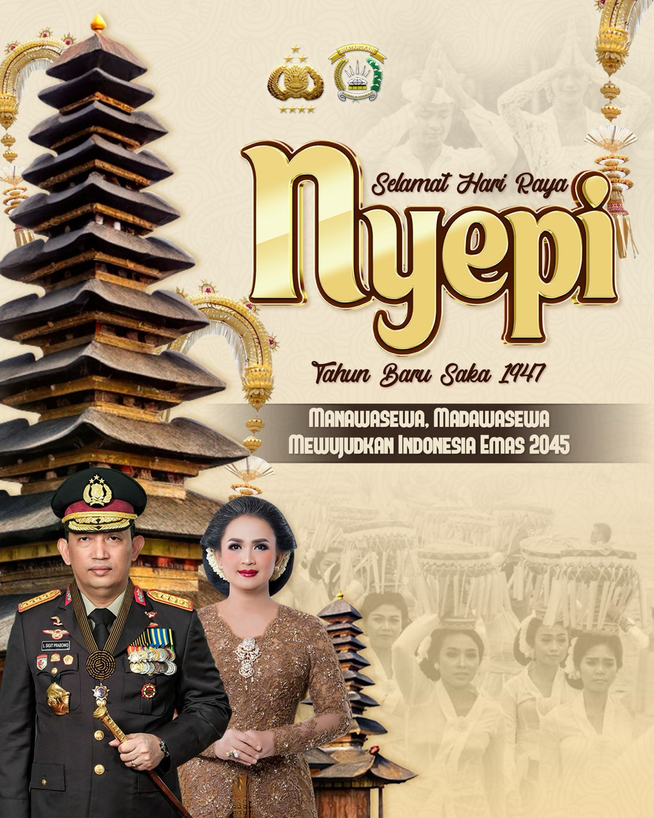 Jenderal Polisi Listyo Sigit Prabowo beserta jajaran Kepolisian Negara Republik Indonesia, Bhayangkari, dan seluruh staf turut mengucapkan selamat Hari Raya Nyepi 2025 kepada umat Hindu di seluruh Indonesia.