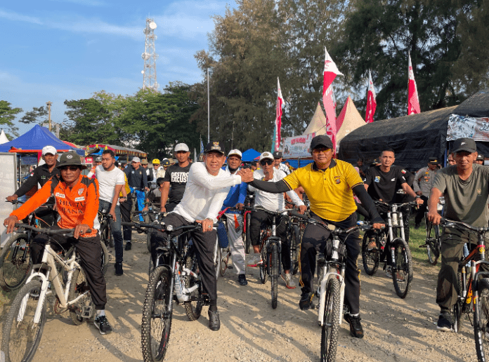 Panca Pena.com PIdie JAYA – Pemerintah Kabupaten Pidie Jaya bersama jajaran Kepolisian menunjukkan kekompakan dan kedekatan dengan masyarakat dalam memeriahkan Hari Ulang Tahun (HUT) ke-18 Kabupaten Pidie Jaya. Bupati H. Sibral Malasyi, M.A., S.Sos., M.E., didampingi Wakil Bupati Hasan Basri, S.T., M.M., dan Wakapolres Kompol Iswahyudi, S.H., CPHR., CBA., turut ambil bagian dalam kegiatan sepeda santai yang berlangsung meriah pada Minggu pagi, 15 Juni 2025.