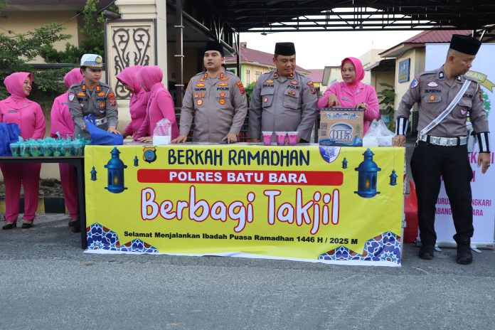 Lima Puluh – Pancapena.com – koSepekan sudah di jalan puasa Ramadhan 1446 H / tahun 2025 Polres Batu Bara tetap eksis lakukan pembagian Takjil Berbuka Kepada Masyarakat, Sabtu 08 Maret 2025 sekira pukul 16.30 wib, di seputaran Mako Polres Batu Bara Provinsi Sumut.