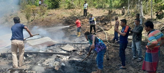 “Material kayu yang mendominasi bangunan membuat api cepat menyebar ke seluruh bagian rumah,” jelas Kapolsek di lokasi kejadian.